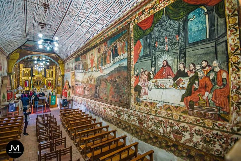 Tutte le pitture sono state eseguite da artisti indigeni evangelizzati dai missionari; non c’è stato alcun intervento europeo. I pittori, che non hanno registrato i loro nomi, hanno inserito elementi della cultura andina nei dipinti biblici dell’Antico e del Nuovo Testamento, realizzati con coloranti naturali. Vi è una certa sproporzione dei corpi umani e la presenza di simboli della cultura originaria come il sole e la luna, elementi di flora e fauna locali, denota un forte sincretismo culturale e religioso.