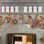 Gli affreschi sono dovuti a tre pittori, che si distinguono convenzionalmente con i nomi di «Maestro della Passione», «Maestro dell’Infanzia» e «Miniaturista». Spetterebbero al primo, che appare la personalità più colta e importante, tutti i dipinti delle pareti, nonché l’Ultima Cena. Al «Maestro dell’Infanzia» le scene dipinte nelle prime due campate delle volte, e al terzo artista tutti i dipinti della volta nella terza campata.