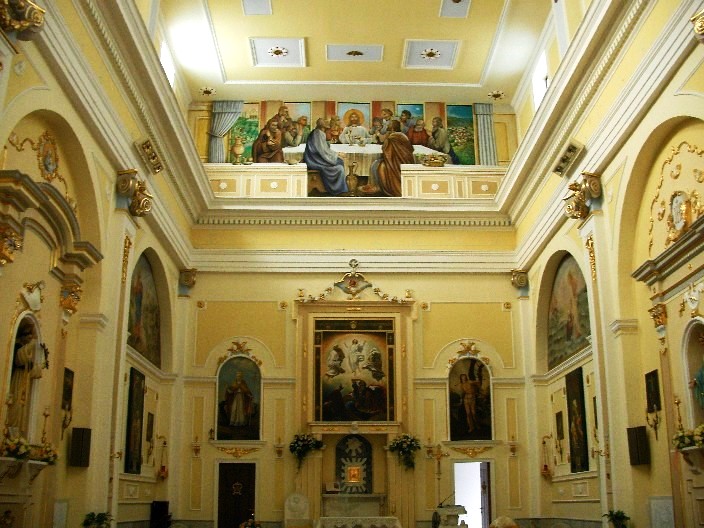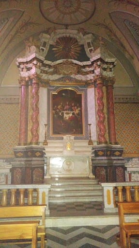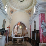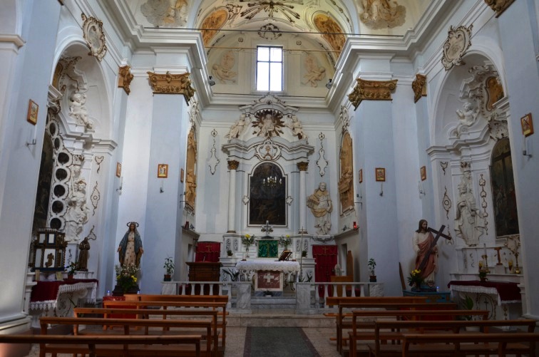 La chiesa ha sull’altare maggiore un’ancona con tabernacolo, sculture lignee del 1701 opera di Giovanni Battista Zotti.