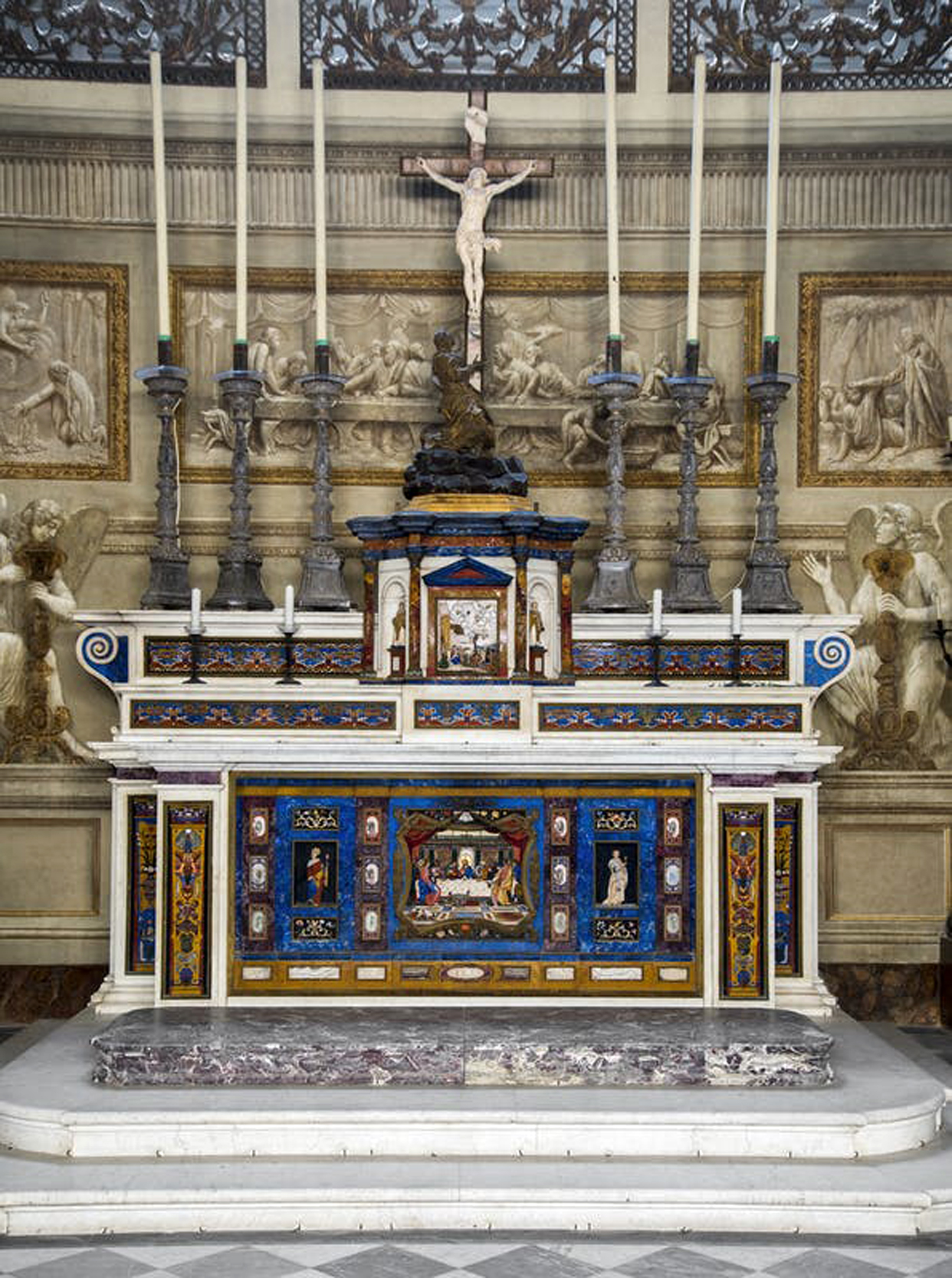 Purtroppo l’opera è giunta a noi in modo fortemente lacunoso: sono oggi presenti solo quattro Apostoli. Evidente è lo stile arcaico del pittore, caratterizzato dai bordi rossastri fortemente marcati, dalla bidimensionalità della scena e dalle figure con capelli ondulati e occhi allungati.