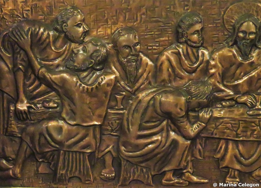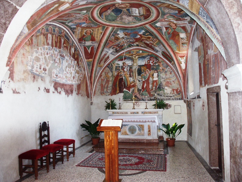 A destra della nicchia, è invece rappresentata un’ULTIMA CENA realizzata dal “Maestro di Sommacampagna”, l’artista Giovanni /Jhoannes da Volpino (? – 1384/1389), ed eseguita nel sesto decennio del XIV secolo.