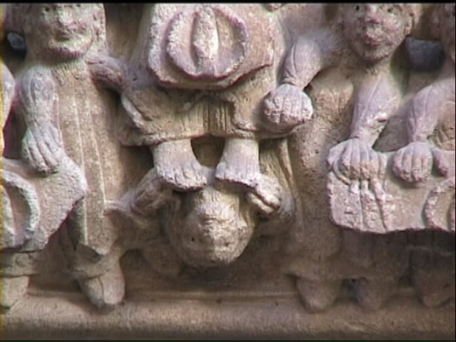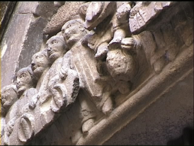 La parete alla destra ci riporta verso l’ingresso della chiesa. Qui il lavoro di interpretazione si presenta di tutto riposo, per così dire; quasi sempre ad ogni immagine viene attribuito il suo “proprietario” ben evidenziato in un cartiglio che lo indica.