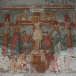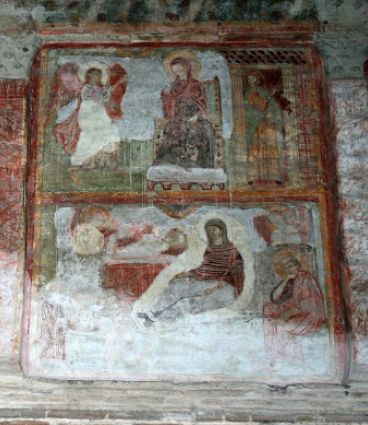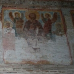 Sulla parete occidentale vi ha sopra la porta, il Salvatore nella tomba, e, più in basso, le figure individuali di alcuni santi, mentre altre simili figure ornano la metà verso occidente della parete Sud. Sul fronte dell’abside un artista più moderno dipinse s. Giorgio in lotta col drago. Anche le pitture nel semicerchio e sulla facciata occidentale sono più moderne: lassù, nella mezza cupola, la Madonna, più al basso, il martirio di s. Sebastiano, e tre scene della vita di s. Nicolao da Mira.