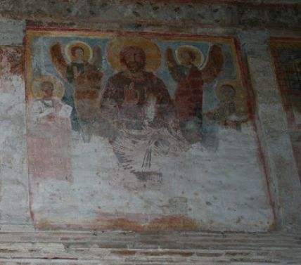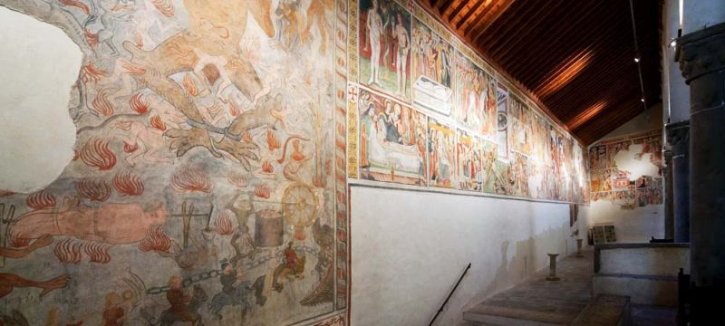 Procediamo a destra su questa parete che è completamente affrescata.