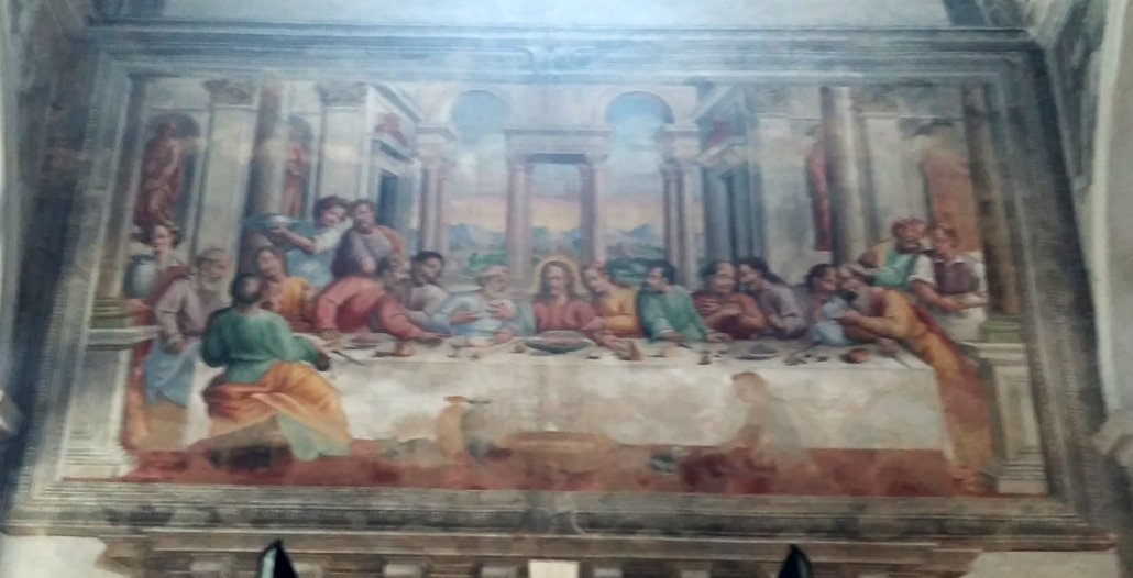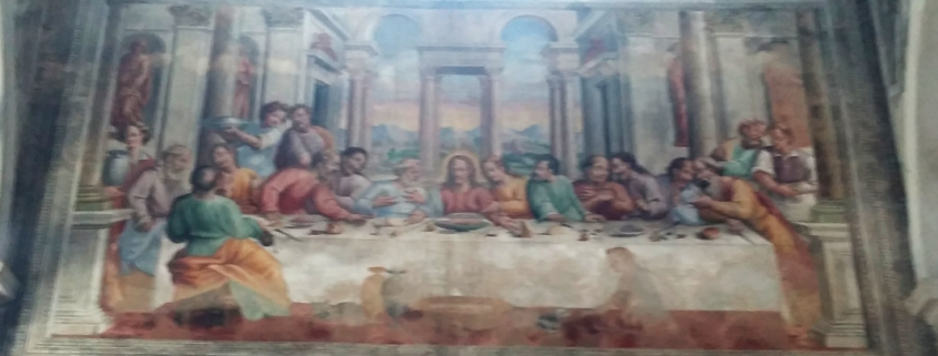 Conserva parecchie opere d’arte e, in controfacciata, sopra il portale di ingresso, un affresco con l’Ultima Cena eseguito sul modello leonardesco.