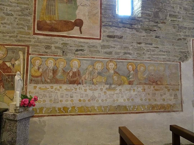 L’affresco dell’Ultima Cena è di fine XIV secolo – primo decennio XV, attribuito al “pittore della Madonna di Re” (santuario nel comune di Re in Val Vigezzo).