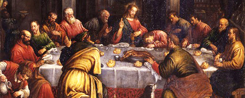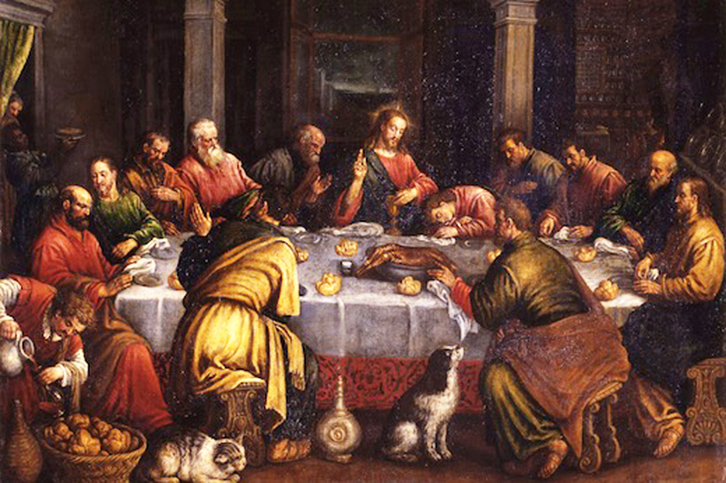 Ultima cena, olio su tela, (92 × 135 cm),di Leandro Bassano databile nel periodo 1580 – 1599