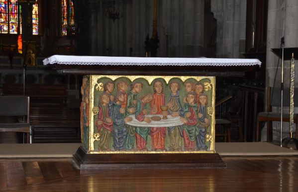 All’incrocio del transetto dal 1980 è installato un moderno altare maggiore accompagnato da un ambone. Quest’opera, di Claude Gruer (1922 -2013), in terracotta refrattaria, è stata scolpita direttamente, senza uso di stampo. Di forma parallelepipeda, l’altare presenta sulle facce principali l’Ultima Cena (lato fedele) e Cristo deposto dalla croce (lato coro), sui lati secondari san Sansone che attraversa la Manica e san Maglorio/Magloire che pacifica i soldati inglesi