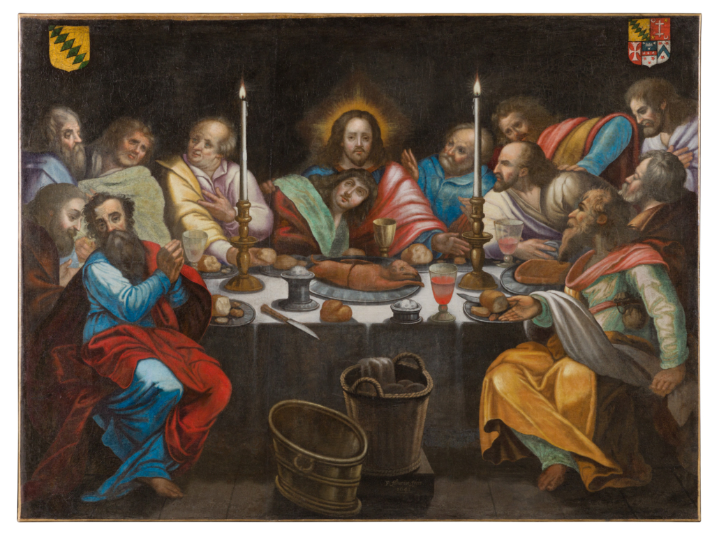 Su una parete è appeso un olio su tela di 117 x 154 cm, che raffigura un’Ultima Cena, opera del 1641 di François Fleuriot, pittore attivo nella prima metà del XVII secolo, probabilmente ispirata alla Cena di Tiziano all’Escorial.