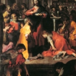 Tecnica mista su legno di abete rosso. La Cena è la scena centrale della predella dell’altare domenicano di Francoforte (76,3 x 277,5 x 5,5 cm), eseguita nel 1501 da Hans Holbein il Vecchio (1460 – 1524).