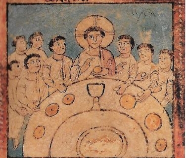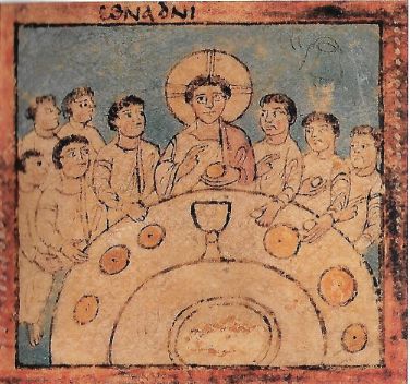 Questa è la prima raffigurazione nota (c. 600) dell’Ultima Cena in cui compare il calice del vino per l’eucarestia, elemento centrale della scena, è posto proprio di fronte a Cristo.