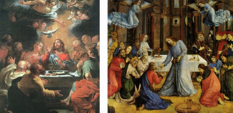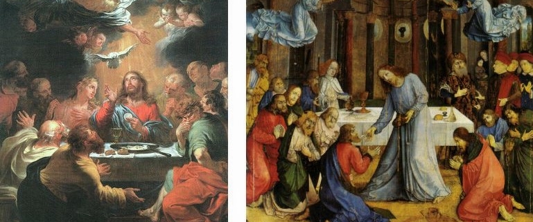 In altre opere si mostra la COMUNIONE DEGLI APOSTOLI, con Gesù che porge il pane o l’osta ai discepoli.