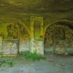 Le poche tracce ancora visibili degli affreschi ci permettono di vedere raffigurate” una ricca iconografia tra cui scene del Vecchio Testamento e un ciclo cristologico, tema piuttosto raro nell’ambito della decorazione pittorica delle chiese rupestri”.