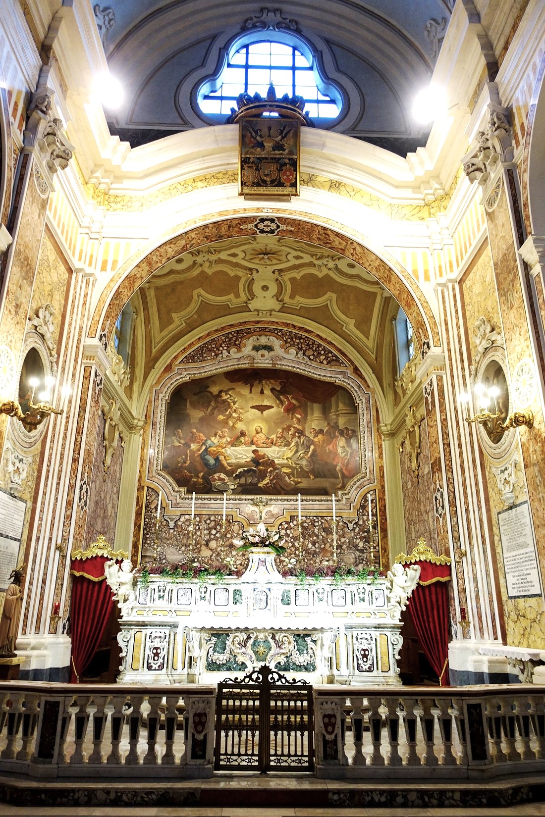MONOPOLI (BA). Cattedrale di Maria Santissima della Madia, con Ultima Cena di F. De Mura, 1755