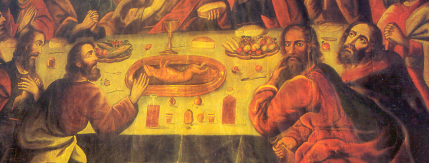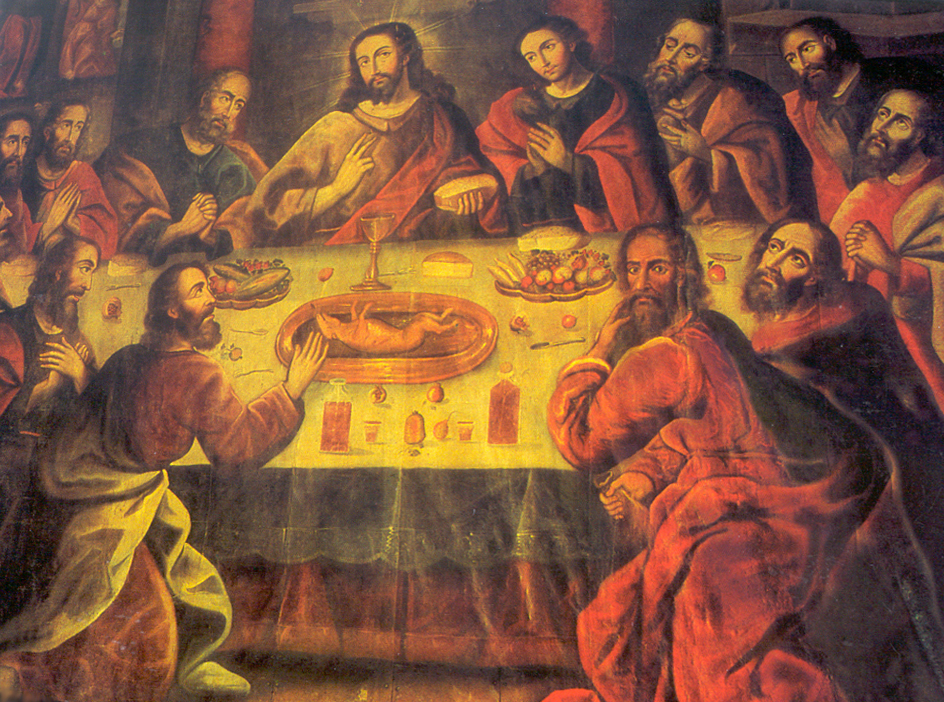 Questo dipinto fonde le tradizioni culturali occidentali con quelle peruviane, pur rimanendo fedele al simbolismo cristiano all’interno del soggetto: invece del tradizionale agnello, Zapata presenta un piatto di cuy, o porcellino d’India, una prelibatezza andina ricca di significati culturali perché era tradizionalmente un animale sacrificale nelle feste agricole Inca e in questo modo offre un parallelo all’agnello cristiano. (Anche nell’Ultima Cena conservata a Lima vi è il cuy invece dell’agnello, vedi scheda.)