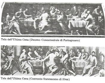 Tela dell’Ultima Cena (parete interna della facciata) di un pittore della cerchia di Palma il Giovane: olio su tela, del 1604, che misura cm. 148 x 550. In basso a destra porta scritto: ANNO DNI MDCIV IACOMO BUTOLO GASTALLO