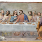 Sulla parete destra della navata un grande dipinto raffigura l’Ultima Cena con gli Apostoli attorno una tavola rettangolare sulla quale sono l’agnello e pani.