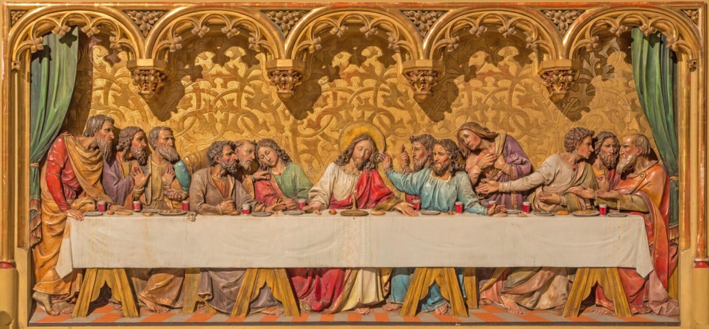 SLOVACCHIA – BRATISLAVA. Cattedrale di San Martino, scultura di Ultima Cena (dal Cenacolo di Leonardo) di F. Prinoth, XX secolo