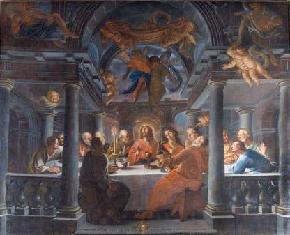 ULTIMA CENA, olio su tela, attribuita a Carlo Gaudenzio Mignocchi (1666 – 1716) realizzata nel 1701